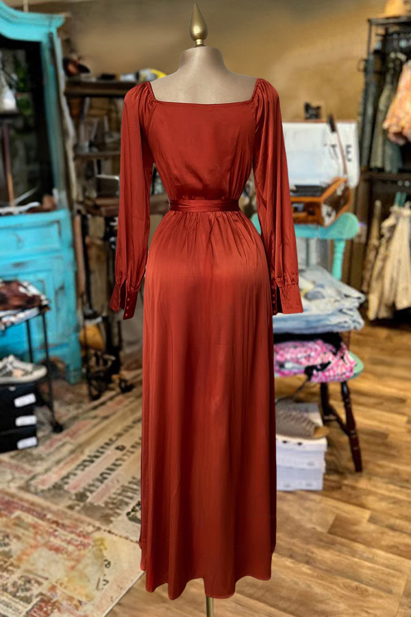 Pretty Ruffle Hem Long Sleeve Satin Dress