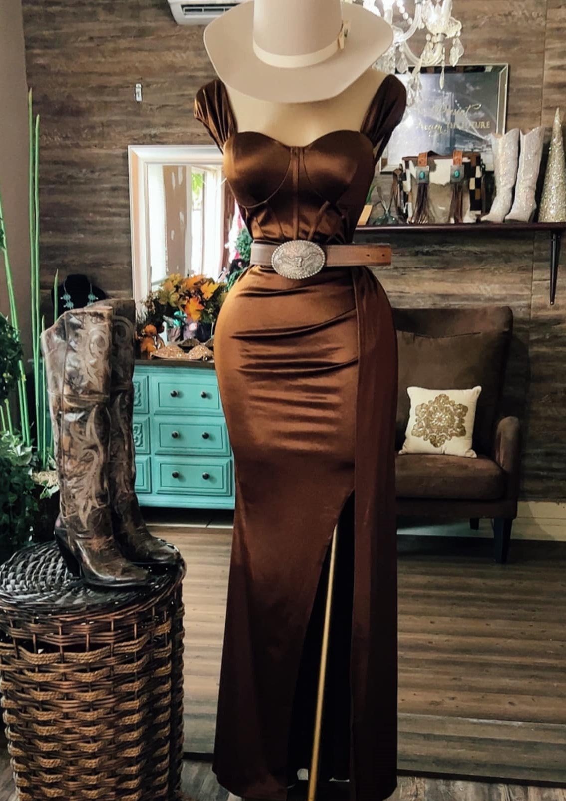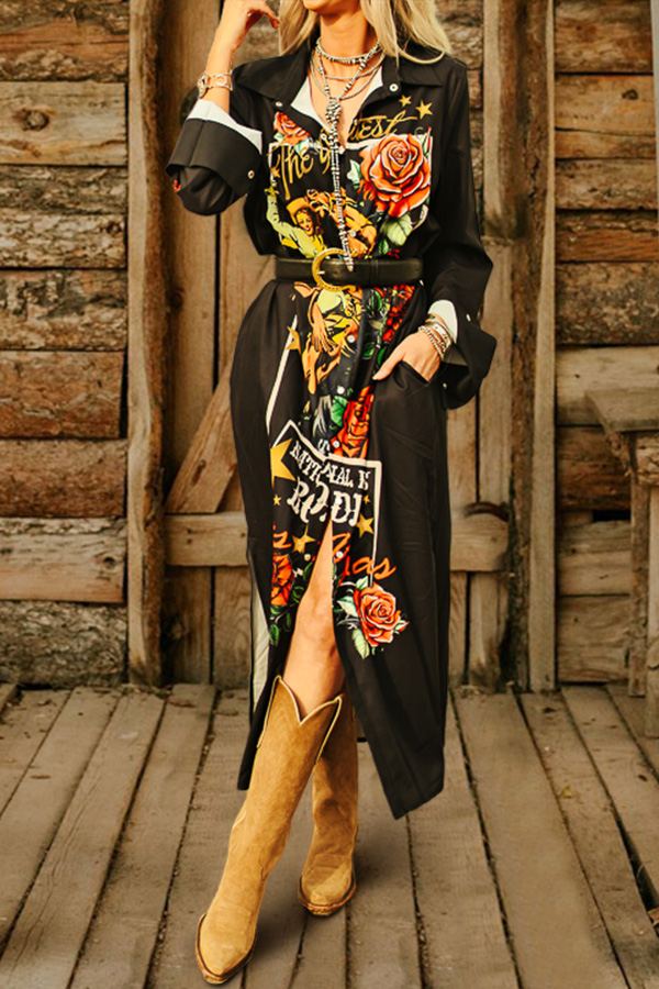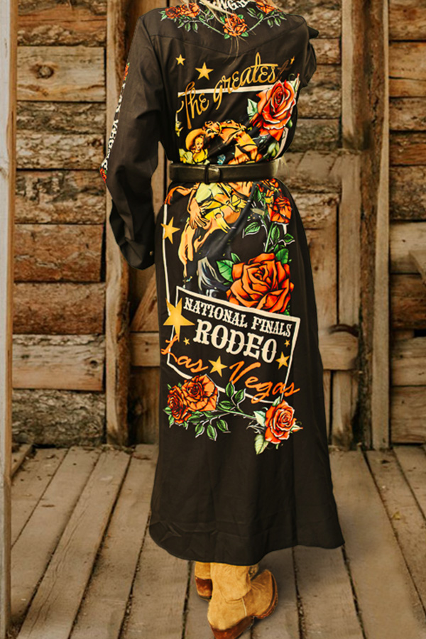 Rodeo Horse Rose Printed Button Down Maxi Shirt Dress