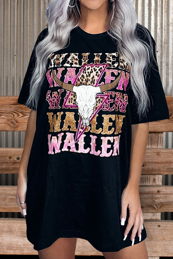 Retro Cow Head Tie-Dye Crew Neck T-Shirt