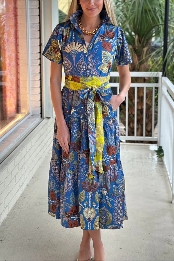 Details The classic lapel and short sleeves exude a sophisticated and capable air, while also softening the complexity of the print, resulting in a more streamlined overall look. The detachable belt serves as both a visual focal point and allows for adjustable waistline placement, instantly creating an hourglass figure and effectively concealing any unwanted tummy fat. The multi-layered hem that flares out naturally from the waist creates a flowing and graceful silhouette, perfectly concealing wide hips and leg imperfections, making it flattering for pear-shaped and apple-shaped figures.