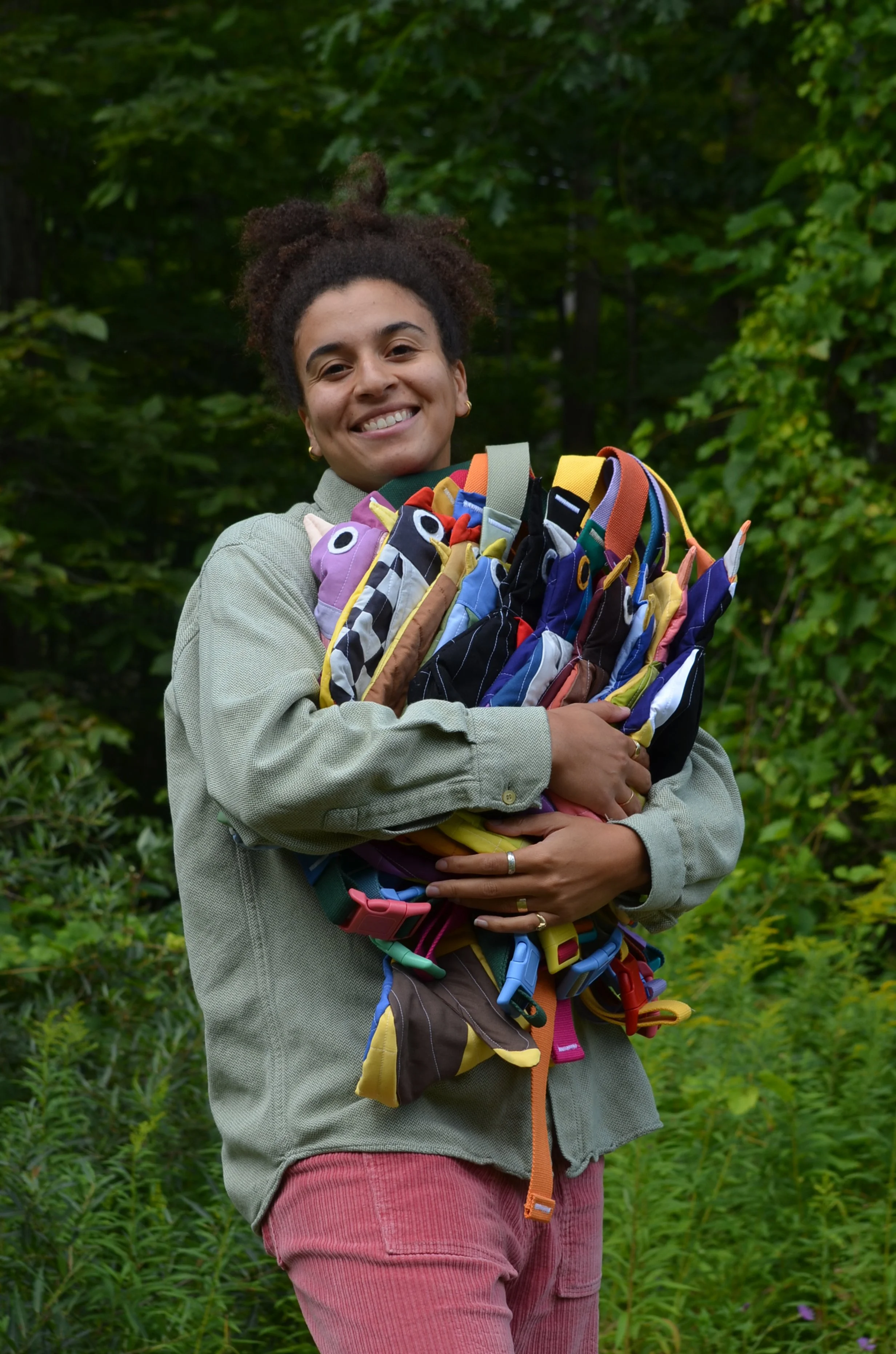 The Fly Away Crossbody is a sling bag shaped like a bird! This is a completely handmade bird bag that will quickly become your go-to crossbody. Besides the adorable bird front, it has a mosaic of colorful fabric and notions for the interior, strap, zipper, and back side. The bag can be worn like a sling or a shoulder bag, and the strap is fully adjustable. Gorgeously soft quilted bag made from 100% cotton fabric and batting 100% cotton strap with high-quality plastic buckles and zipper Fully-lined interior Bag faces the right side of the body while you’re wearing it. It features a checkerboard Chicken front with red, pale gray, and black coloring. The bag interior pictured here is just an example; the interior colors of each bag vary. Hand-wash with water and gentle soap only.