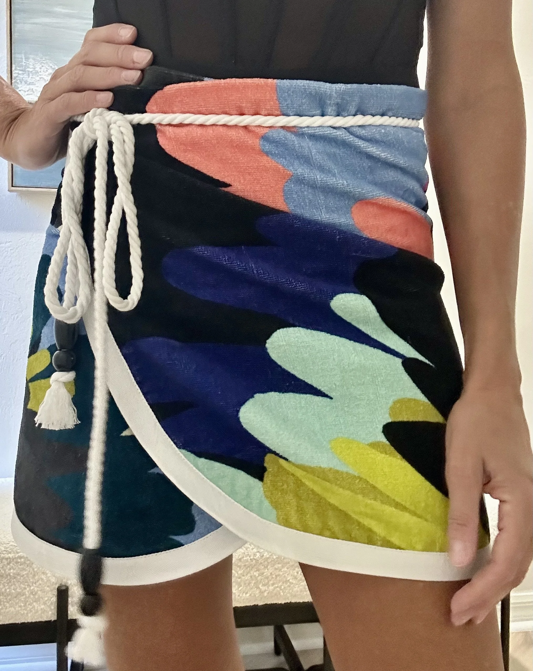 Crafted with meticulous handmade details, this Terry Cloth Towel Wrap is a blend of functionality and resort-ready style. Made from ultra-soft, highly absorbent terry fabric, it features a classic wrap silhouette with a contrasting piped trim and an adjustable braided rope tie with tassel accents for a secure, customizable fit. Designed to transcend occasions, it serves as the perfect cover-up for poolside lounging, beach outings, or spa days, and can also be styled as a casual mini skirt for resort walks or café visits. Timeless in design and durable in quality, it is an essential addition to your leisure and vacation wardrobe.
