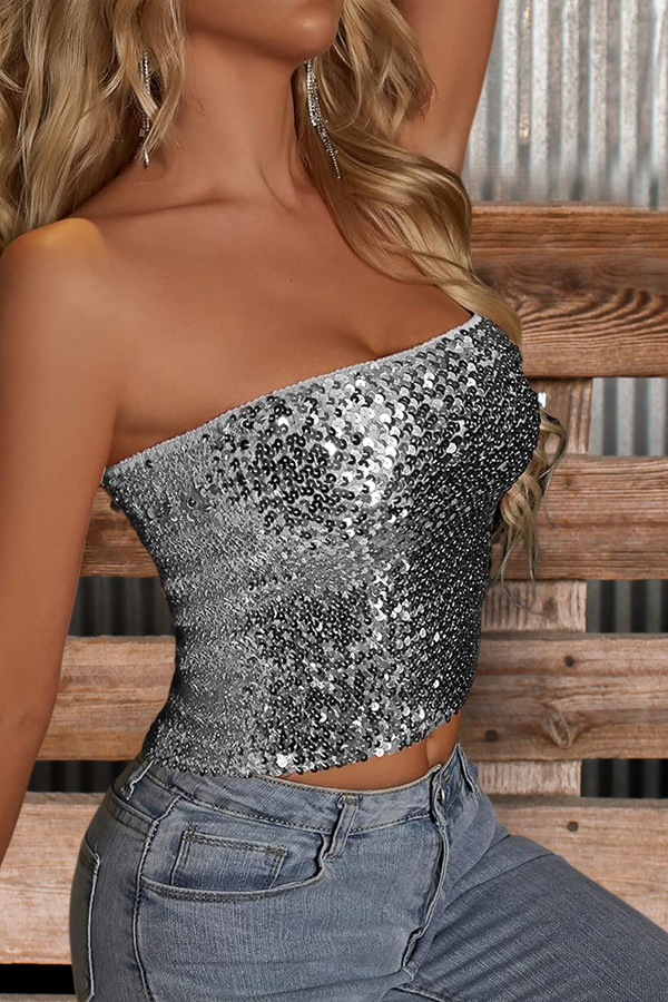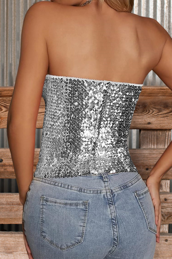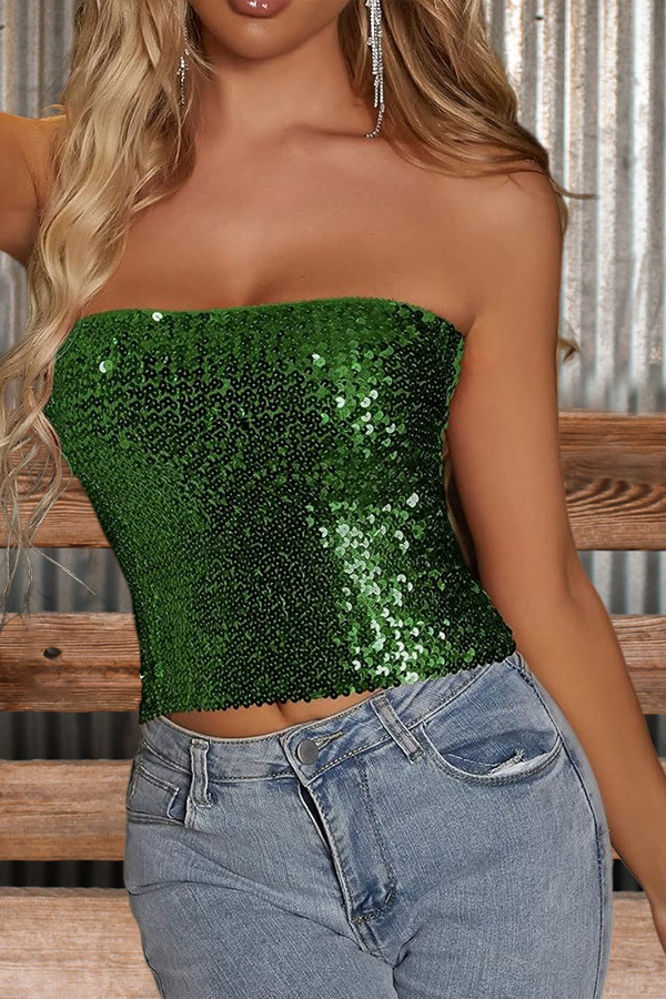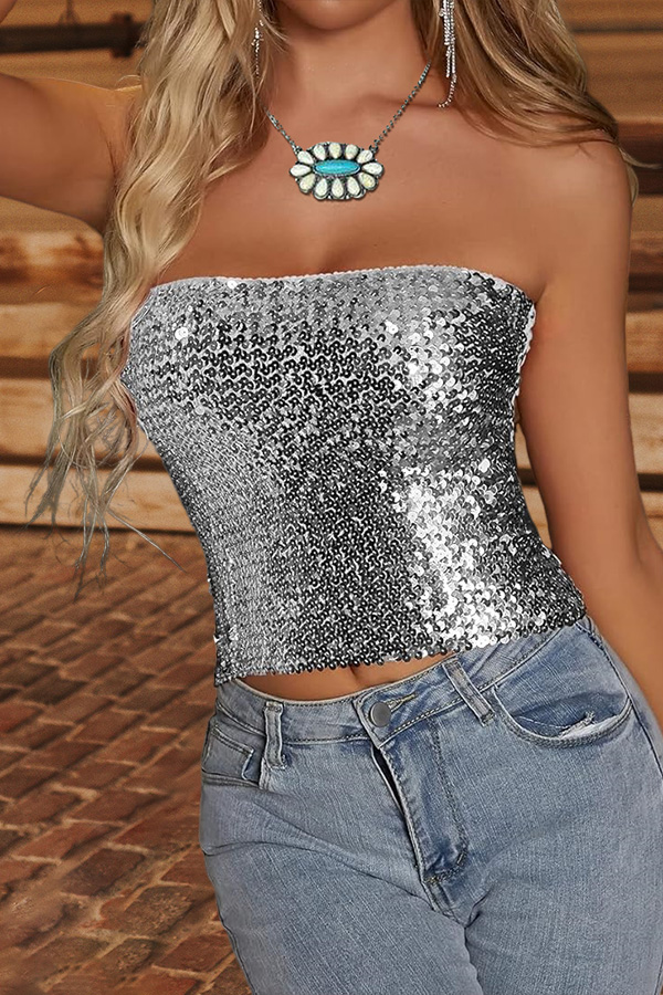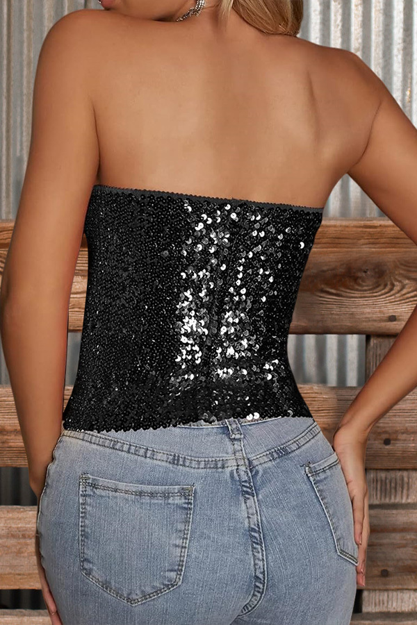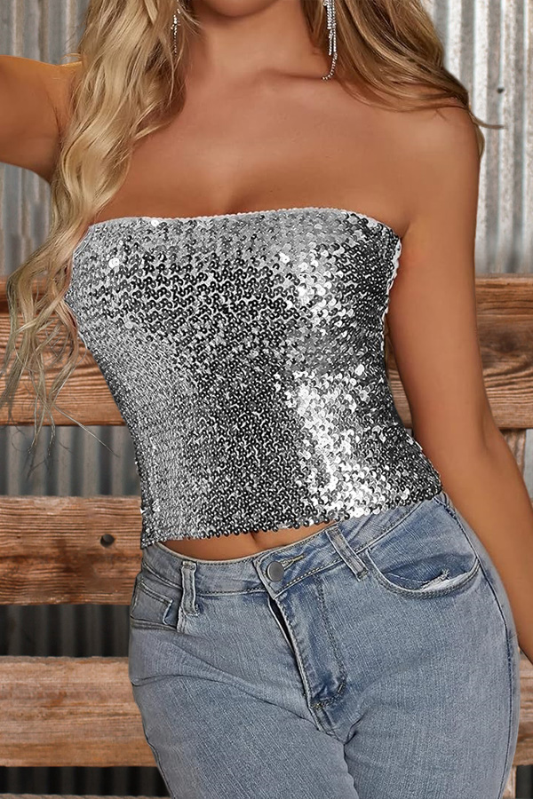 Sexy Solid Sequin Tube Top