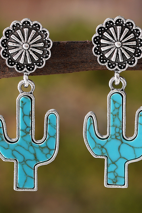 Women's Western Retro Turquoise Cactus Flower Pendant Earrings