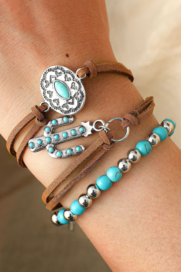 Women's Western Vintage Turquoise Personalized Multi-element Beaded Jewelry Set