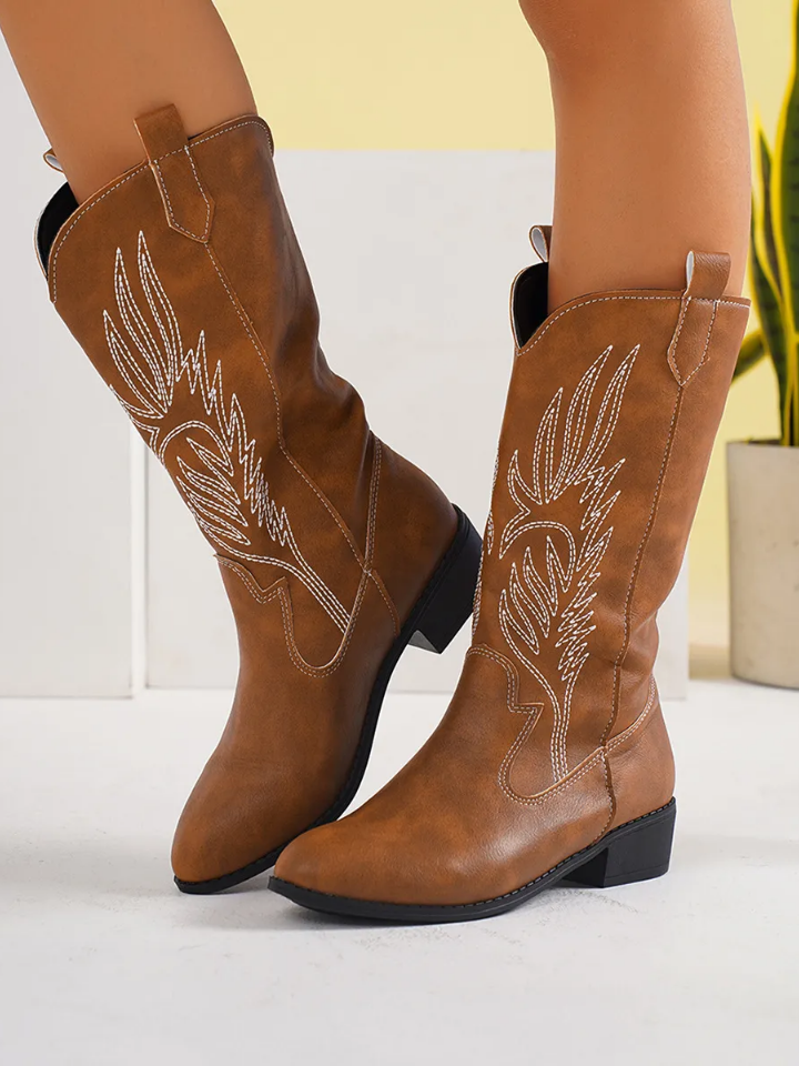 Women Fashion Plus Size Embroidered Pointy Toe Mid-Calf Boots
