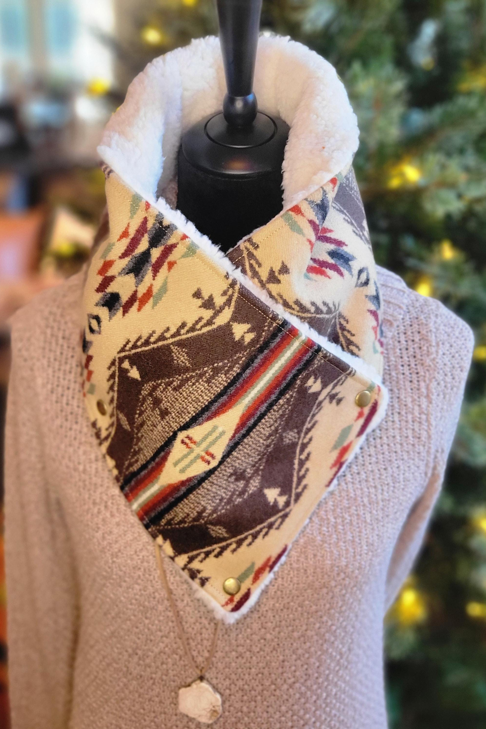 Western Cowboy Red and Blue Print Aztec Warm Neck Hood
