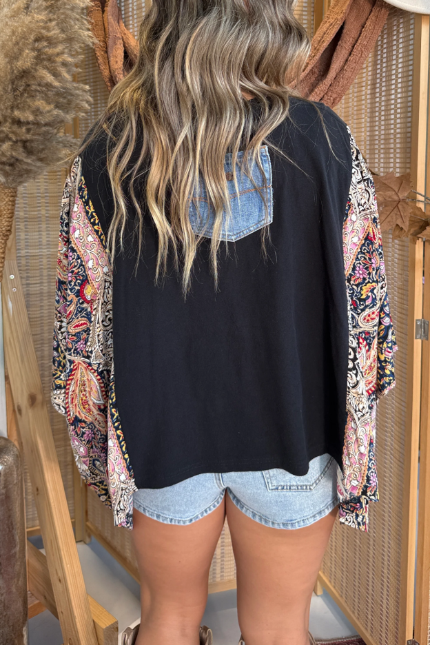 Washed Vintage Graphic Tee with Batwing Sleeve