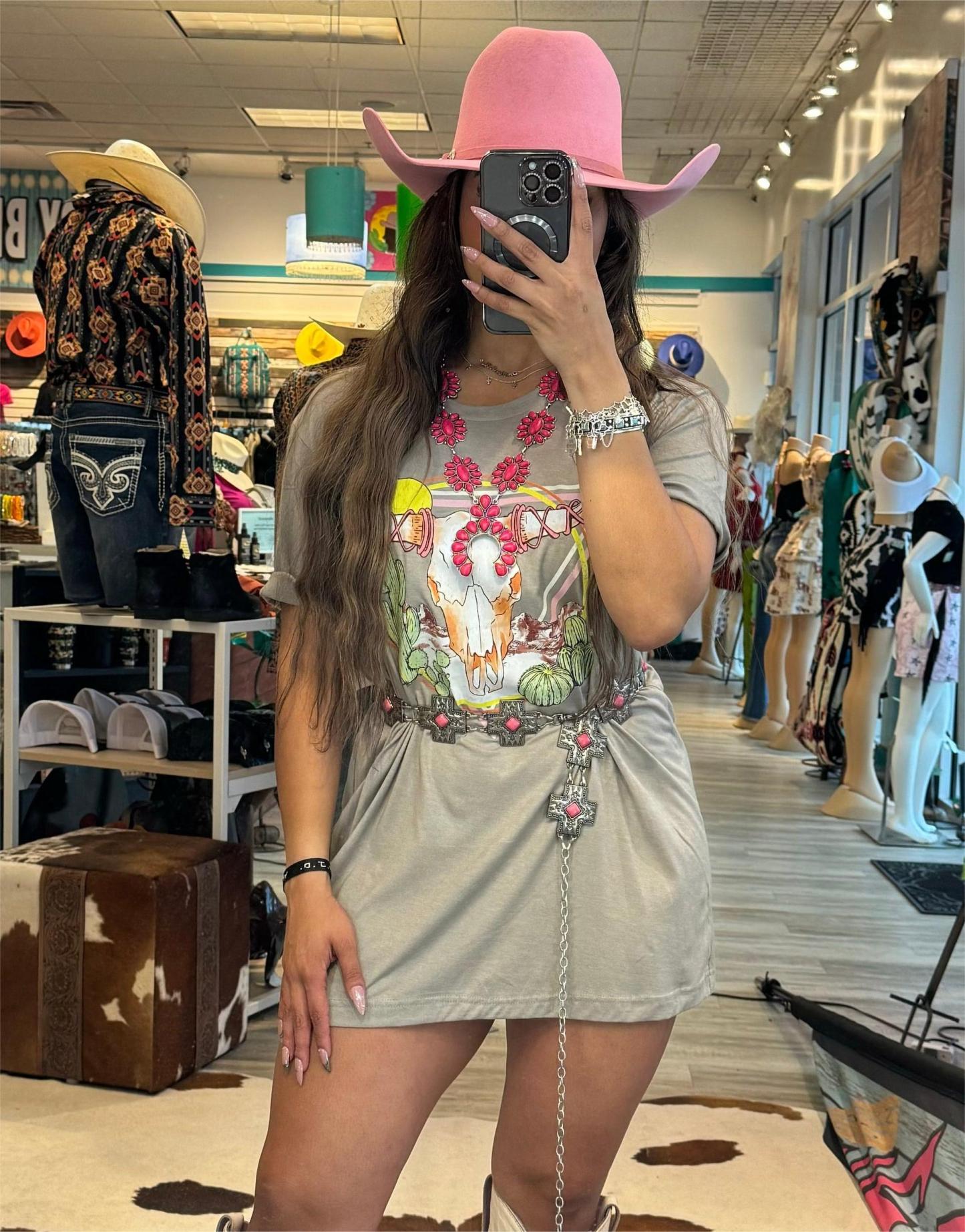 Western Casual Cow skull Printed T-Shirt Dress